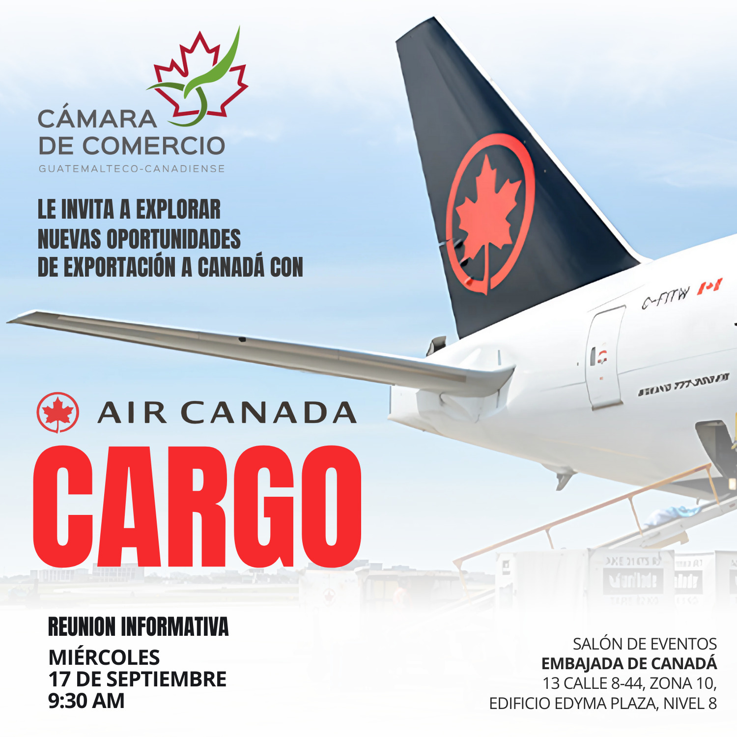La Cámara de Comercio Guatemalteco-Canadiense, en colaboración con Air Canada Cargo, le invita a participar en la Reunión Informativa sobre nuevas oportunidades de exportación a Canadá.