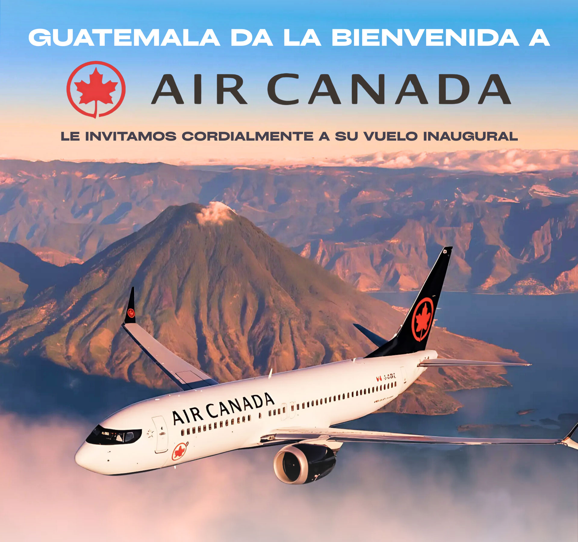 Guatemala da la bienvenida a Canadá, le invitamos cordialmente a su vuelo inaugural.